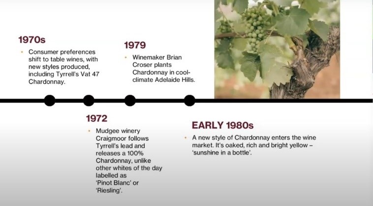 From the 1970s, people were more aware of these grape varieties and chardonnay appeared on the 1st wine label in 1972 called ‘Vat 47 Chardonnay’. This wine put Australian on the map of winemaking as it made people sit up and take notice.