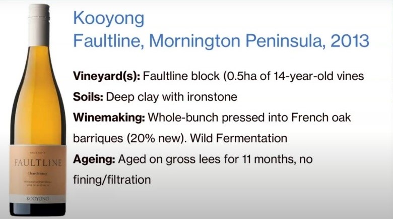 The second wine from Kooyong is also from a single vineyard and at the bottom of the hill not too far from the ‘Faultline’ vineyard which has ironstone soil. These are 14-year-old vines with a lighter/ mineral feel. There are notes of blossom and cashew nut.